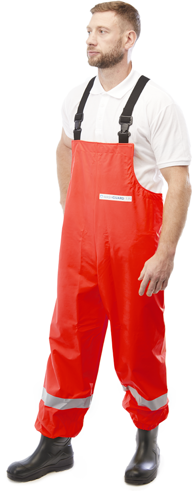 El pantalón con peto WashGuard 170 es una prenda impermeable cómoda y robusta con resistencia a los productos químicos certificada.